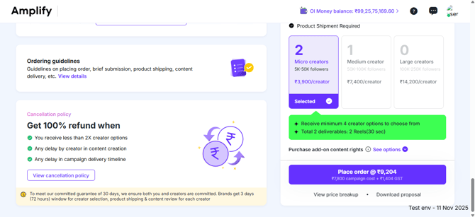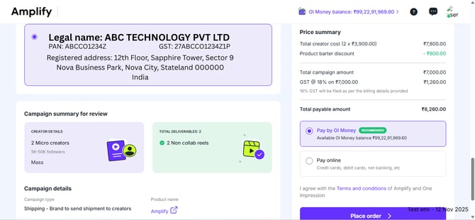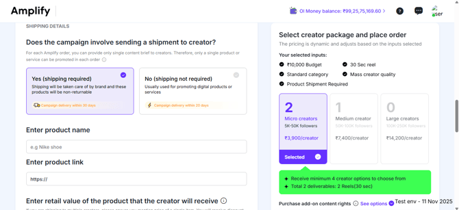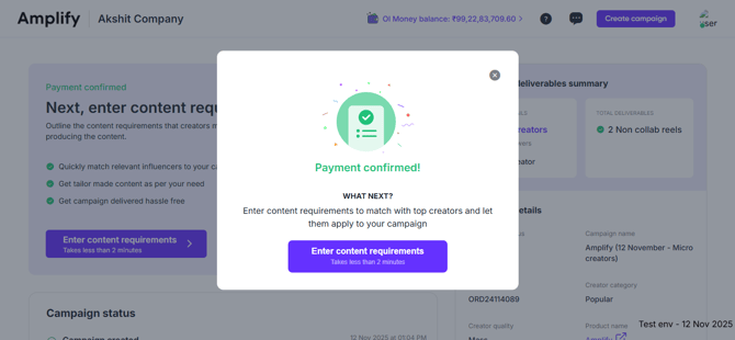 Once your payment is successfully completed, your campaign will be automatically created on One Impression. You can then fill out the campaign brief with your brand’s objectives and content guidelines. Providing clear inputs helps influencers better understand your requirements and ensures smooth campaign execution.